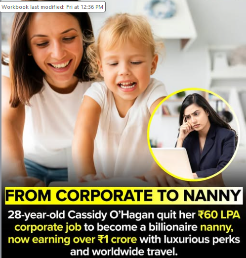 She quit a ₹60 LPA corporate job… to become a nanny for billionaire kids and now makes over ₹1 crore a year flying private jets, living in Aspen winters and Hamptons summers.